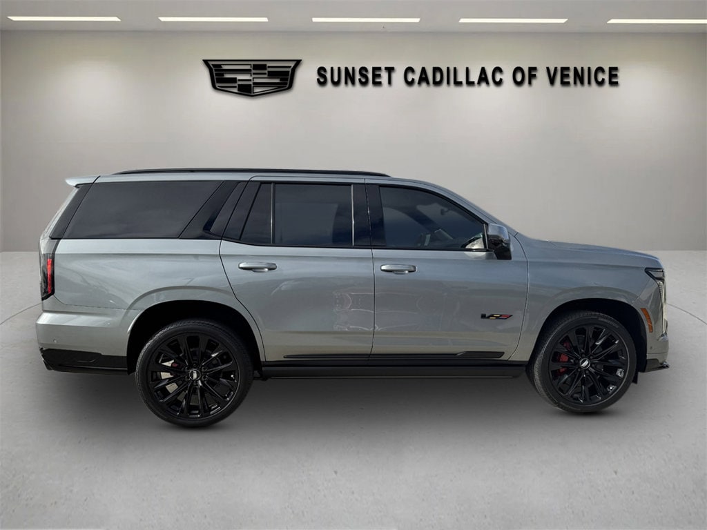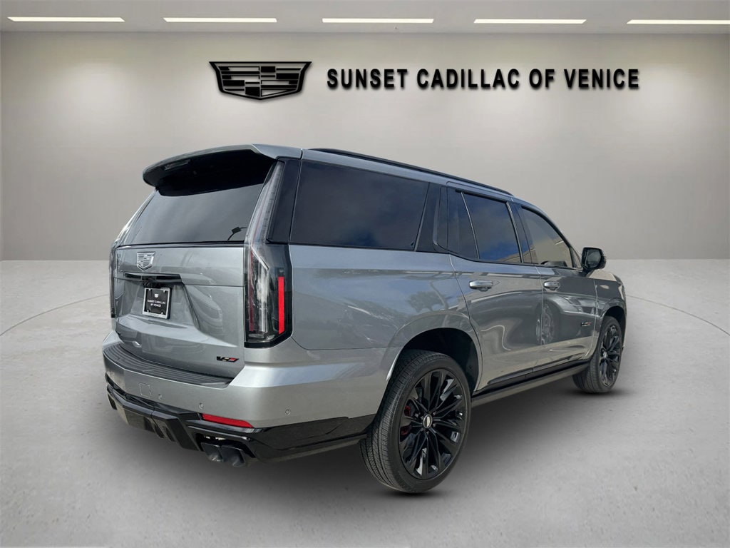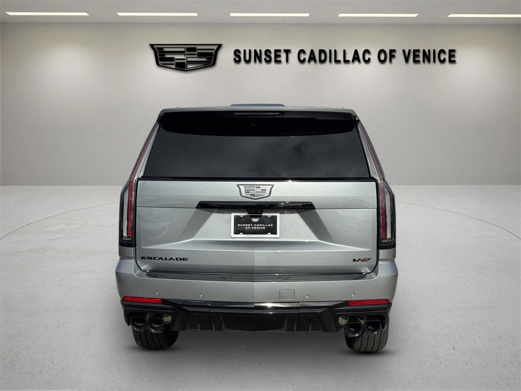 REAR AXLE 3.23 RATIO, JET BLACK FULL SEMI-ANILINE LEATHER SEATS WITH MONDRIAN QUILTING (With Haumea Carbon Fiber trim on Escalade-V.), 3 YEARS SIRIUSXM, TRANSMISSION 10-SPEED AUTOMATIC electronically controlled with overdrive tow/haul mode and tap up/tap down shifting (STD), LPO ONYX PACKAGE includes (RIK) Gloss Black Escalade nameplate LPO (5FE) 24" Black alloy wheels LPO and (R88) Black illuminated Cadillac emblem LPO, SEATS FRONT BUCKET (Includes Semi-Aniline leather 16-way driver and front passenger adjustments with massage.) (STD), SEATS SECOND ROW BUCKET POWER RELEASE (STD), ENGINE 6.2L SUPERCHARGED V8 DI VVT (682 hp [509 kW] @ 6000 rpm 653 lb-ft torque [885 N-m] @ 4400 rpm) (STD), INFOTAINMENT EXPERIENCE WITH 55" DIAGONAL HD CURVED FRONT DISPLAY (STD), ARGENT SILVER METALLIC, LPO 24" (61 CM) BLACK ALLOY WHEELS includes Black center caps with monochromatic crest and Black wheel locks and lugs, LPO BLACK ILLUMINATED CADILLAC EMBLEM, LPO GLOSS BLACK ESCALADE NAMEPLATE located on rear liftgate, ESCALADE-V PREFERRED EQUIPMENT GROUP includes standard equipment, WHEELS 24" (61 CM) STEEL INTERIM, Active Suspension, Supercharged, Keyless Start, Locking/Limited Slip Differential, All Wheel Drive, Tow Hitch, Back-Up Camera, Air Suspension, Active Suspension, ABS, Aluminum Wheels, Wheel Locks, Conventional Spare Tire, Sun/Moonroof, Generic Sun/Moonroof, Panoramic Roof, Running Boards/Side Steps, Power Retractable Running Boards, Automatic Headlights, Automatic Highbeams, Heated Mirrors, Power Mirror(s), Integrated Turn Signal Mirrors, Power Folding Mirrors, Privacy Glass, Intermittent Wipers, Rain Sensing Wipers, Remote Trunk Release, Power Liftgate, MP3 Capability, Bluetooth Connection, Auxiliary Audio Input, Satellite Radio, Requires Subscription, Premium Sound System, Bluetooth Connection, Smart Device Integration, Entertainment System, Bluetooth Connection, WiFi Hotspot, Leather Seats, Seat-Massage, Rear Leather Seats, Heated Front Seat(s), Heated Front Seat(s), Cooled Front Seat(s), Heated Rear Seat(s), Power Driver Seat, Power Passenger Seat, Driver Adjustable Lumbar, Passenger Adjustable Lumbar, Power Driver Seat, Driver Adjustable Lumbar, Seat-Massage, Passenger Adjustable Lumbar, Seat-Massage, Mirror Memory, Seat Memory, 3rd Row Seat, Pass-Through Rear Seat, A/C, Rear A/C, Heated Rear Seat(s), Heated Steering Wheel, Leather Steering Wheel, Cruise Control, Steering Wheel Audio Controls, Heated Steering Wheel, Heads-Up Display, Power Windows, Power Door Locks, Keyless Entry, Power Door Locks, Remote Engine Start, Universal Garage Door Opener, Cruise Control, Telematics, Lane Departure Warning, Lane Keeping Assist, Adaptive Cruise Control, Requires Subscription, Cruise Control Steering Assist, Driver Monitoring, Cruise Control, Adaptive Cruise Control, Security System, Security System, Immobilizer, Security System, Climate Control, Multi-Zone A/C, A/C, Rear A/C, A/C, Rear A/C, Rear Defrost, Back-Up Camera, Brake Assist, Brake Assist, Front Collision Mitigation, Front Collision Warning, Front Collision Mitigation, Front Collision Warning, Rear Collision Mitigation, Cross-Traffic Alert, Traction Control, Stability Control, Front Side Air Bag, Front Head Air Bag, Rear Head Air Bag, Knee Air Bag, Telematics, Requires Subscription, Rear Parking
