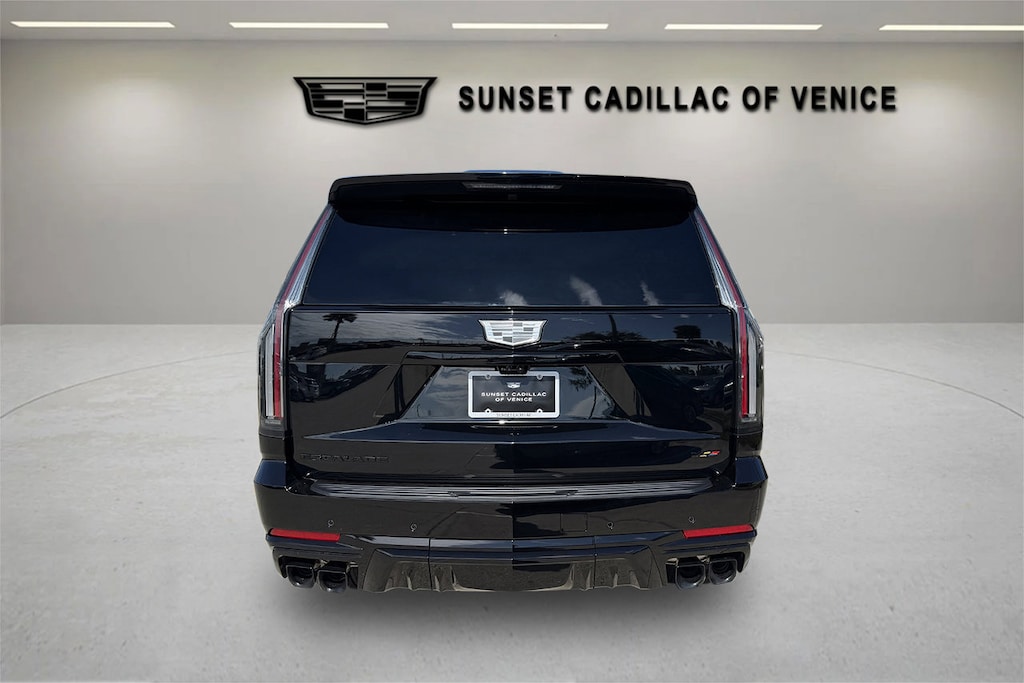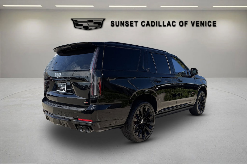 TRANSMISSION 10-SPEED AUTOMATIC electronically controlled with overdrive tow/haul mode and tap up/tap down shifting (STD), LPO ONYX PACKAGE includes (RIK) Gloss Black Escalade nameplate LPO (5FE) 24" Black alloy wheels LPO and (R88) Black illuminated Cadillac emblem LPO, ENGINE 6.2L SUPERCHARGED V8 DI VVT (682 hp [509 kW] @ 6000 rpm 653 lb-ft torque [885 N-m] @ 4400 rpm) (STD), Active Suspension, Supercharged, Keyless Start, Locking/Limited Slip Differential, All Wheel Drive, Tow Hitch, Back-Up Camera, Air Suspension, Active Suspension, ABS, Aluminum Wheels, Wheel Locks, Conventional Spare Tire, Sun/Moonroof, Generic Sun/Moonroof, Panoramic Roof, Running Boards/Side Steps, Power Retractable Running Boards, Automatic Headlights, Automatic Highbeams, Heated Mirrors, Power Mirror(s), Integrated Turn Signal Mirrors, Power Folding Mirrors, Privacy Glass, Intermittent Wipers, Rain Sensing Wipers, Remote Trunk Release, Power Liftgate, MP3 Capability, Bluetooth Connection, Auxiliary Audio Input, Satellite Radio, Requires Subscription, Premium Sound System, Bluetooth Connection, Smart Device Integration, Entertainment System, Bluetooth Connection, WiFi Hotspot, Leather Seats, Seat-Massage, Rear Leather Seats, Heated Front Seat(s), Heated Front Seat(s), Cooled Front Seat(s), Heated Rear Seat(s), Power Driver Seat, Power Passenger Seat, Driver Adjustable Lumbar, Passenger Adjustable Lumbar, Power Driver Seat, Driver Adjustable Lumbar, Seat-Massage, Passenger Adjustable Lumbar, Seat-Massage, Mirror Memory, Seat Memory, 3rd Row Seat, Pass-Through Rear Seat, A/C, Rear A/C, Heated Rear Seat(s), Heated Steering Wheel, Leather Steering Wheel, Cruise Control, Steering Wheel Audio Controls, Heated Steering Wheel, Heads-Up Display, Power Windows, Power Door Locks, Keyless Entry, Power Door Locks, Remote Engine Start, Universal Garage Door Opener, Cruise Control, Telematics, Lane Departure Warning, Lane Keeping Assist, Adaptive Cruise Control, Requires Subscription, Cruise Control Steering Assist, Driver Monitoring, Cruise Control, Adaptive Cruise Control, Security System, Security System, Immobilizer, Security System, Climate Control, Multi-Zone A/C, A/C, Rear A/C, A/C, Rear A/C, Rear Defrost, Back-Up Camera, Satellite Radio, Requires Subscription, Brake Assist, Brake Assist, Front Collision Mitigation, Front Collision Warning, Front Collision Mitigation, Front Collision Warning, Rear Collision Mitigation, Cross-Traffic Alert, Traction Control, Stability Control, Front Side Air Bag, Front Head Air Bag, Rear Head Air Bag, Knee Air Bag, Telematics, Requires Subscription, Rear Parking Aid, Automatic Parking, Night Vision, Back-Up Camera, Aerial View Display System, Blind Spot Monitor, Evasion Assist, Front Collision Warning, Child Safety Locks, Driver Restriction Features, Tire Pressure Monitor, Telematics, Requires Subscription, Telematics, Navigation from Telematics, Requires Subscription
